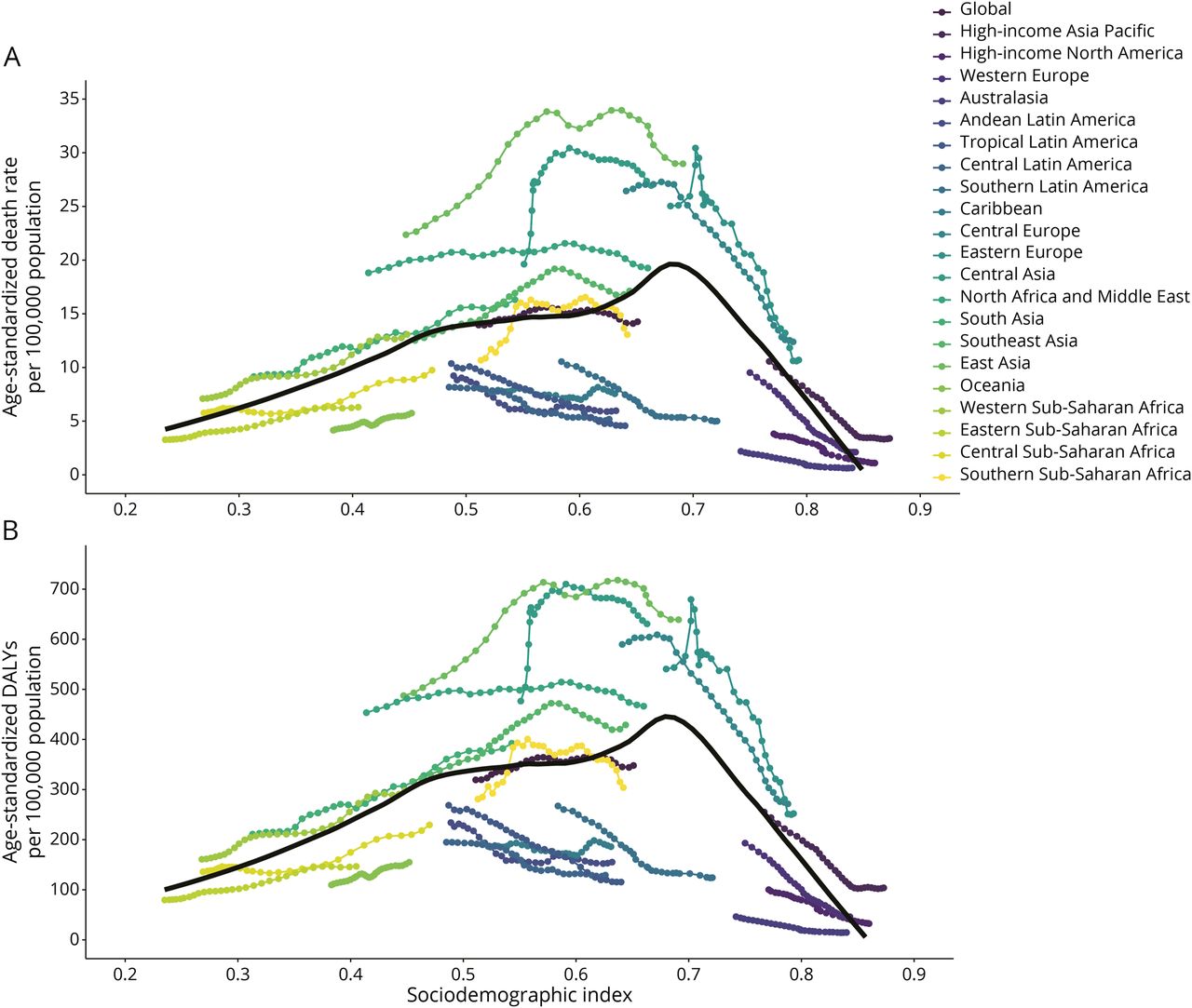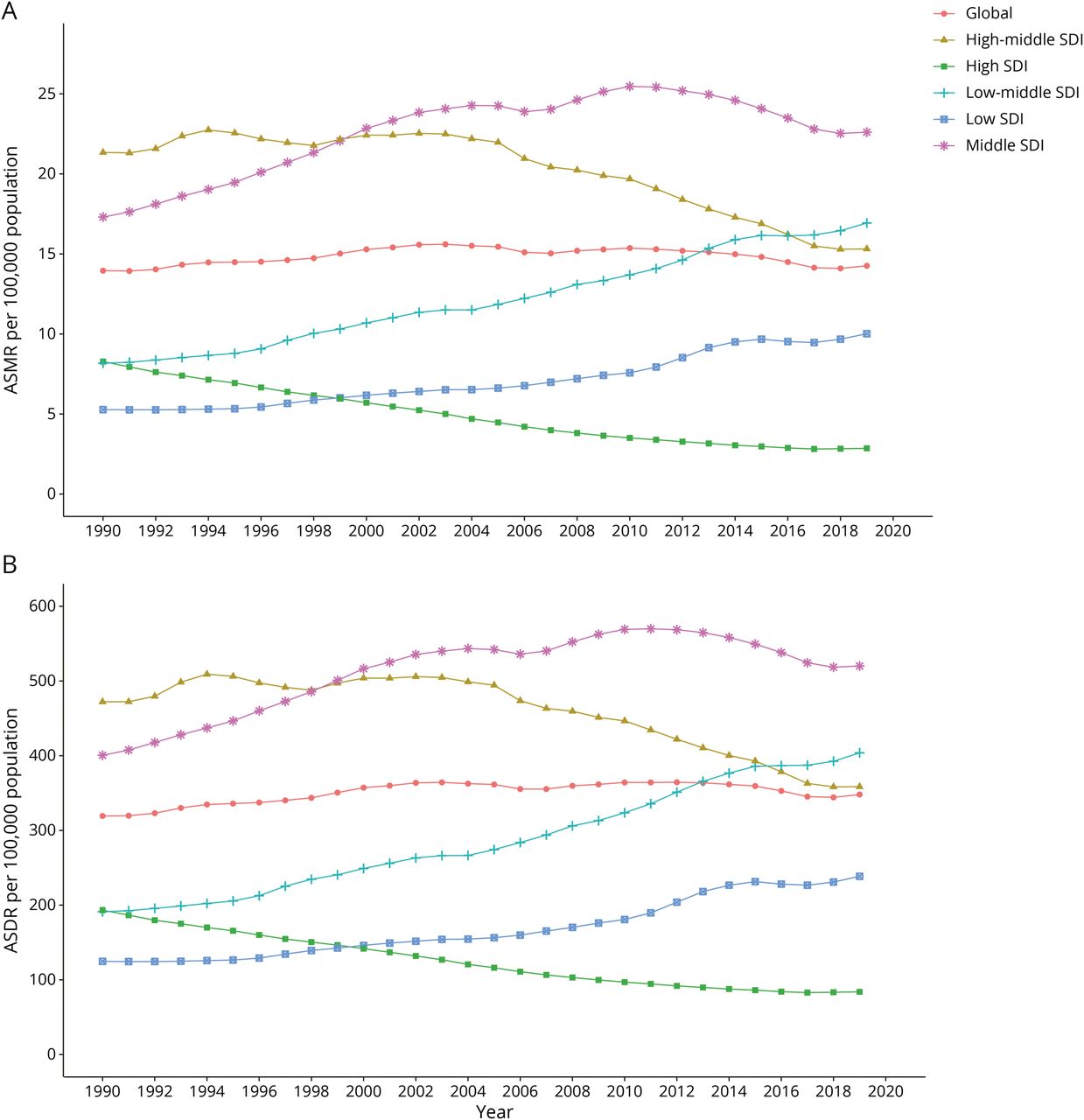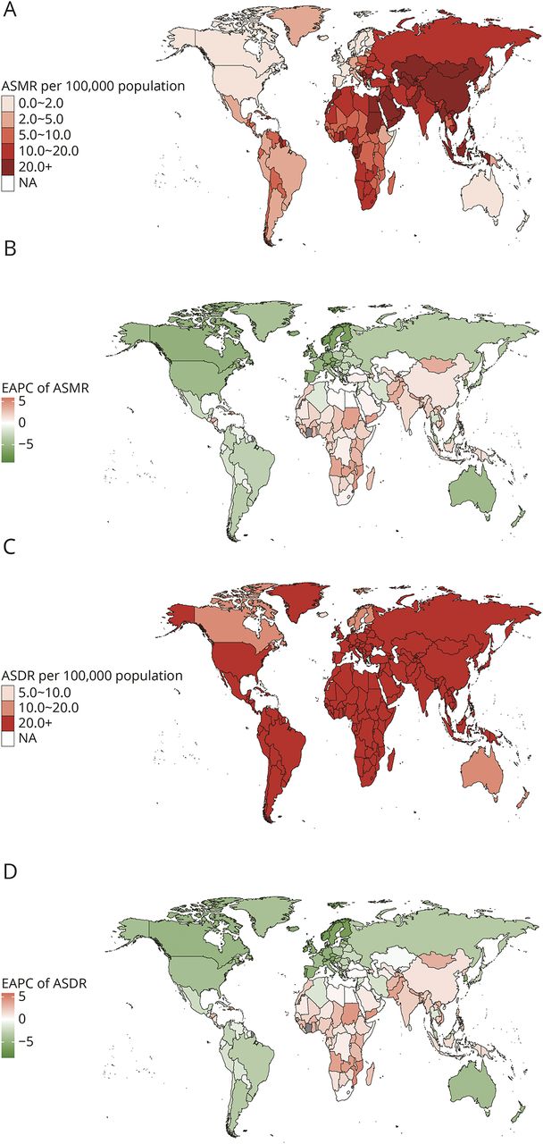 背景和目标先前的研究表明,长期暴露于环境细颗粒物(PM2.5)是与中风的风险增加有关。然而,有限的研究评估了中风归因于环境点负担2.5在全球范围内,特别是由不同地区、国家和社会经济水平。因此我们进行这项研究估计周围的空间和时间趋势点2.5有关的中风负担按性别、年龄和亚型从1990年到2019年在全球、地区和国家的水平。