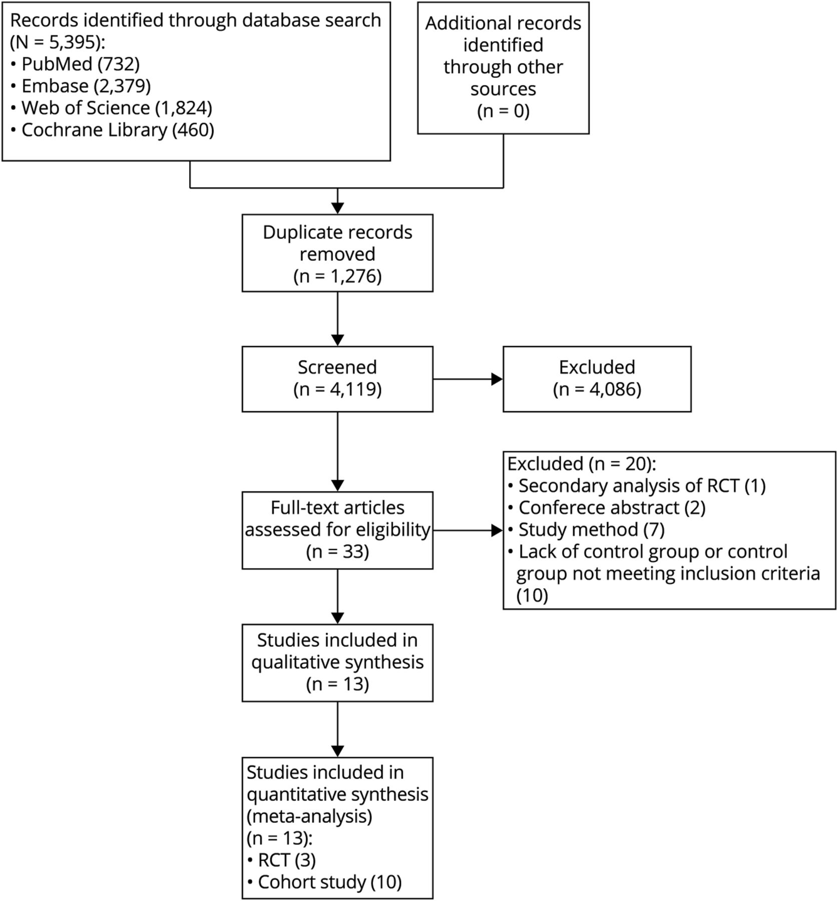 我们搜索PubMed、Embase Cochrane图书馆、科学和Web数据库获取文章中所有的语言从开始到2月10日,2023年。“中风”、“血栓切除术”和“大缺血性核心”是搜索条件。同义词是来自PubMed、Embase和Cochrane图书馆消除重复。详细的搜索条件提供了关键字及其同义词eTable 1 (links.lww.com/WNL/C859)。
