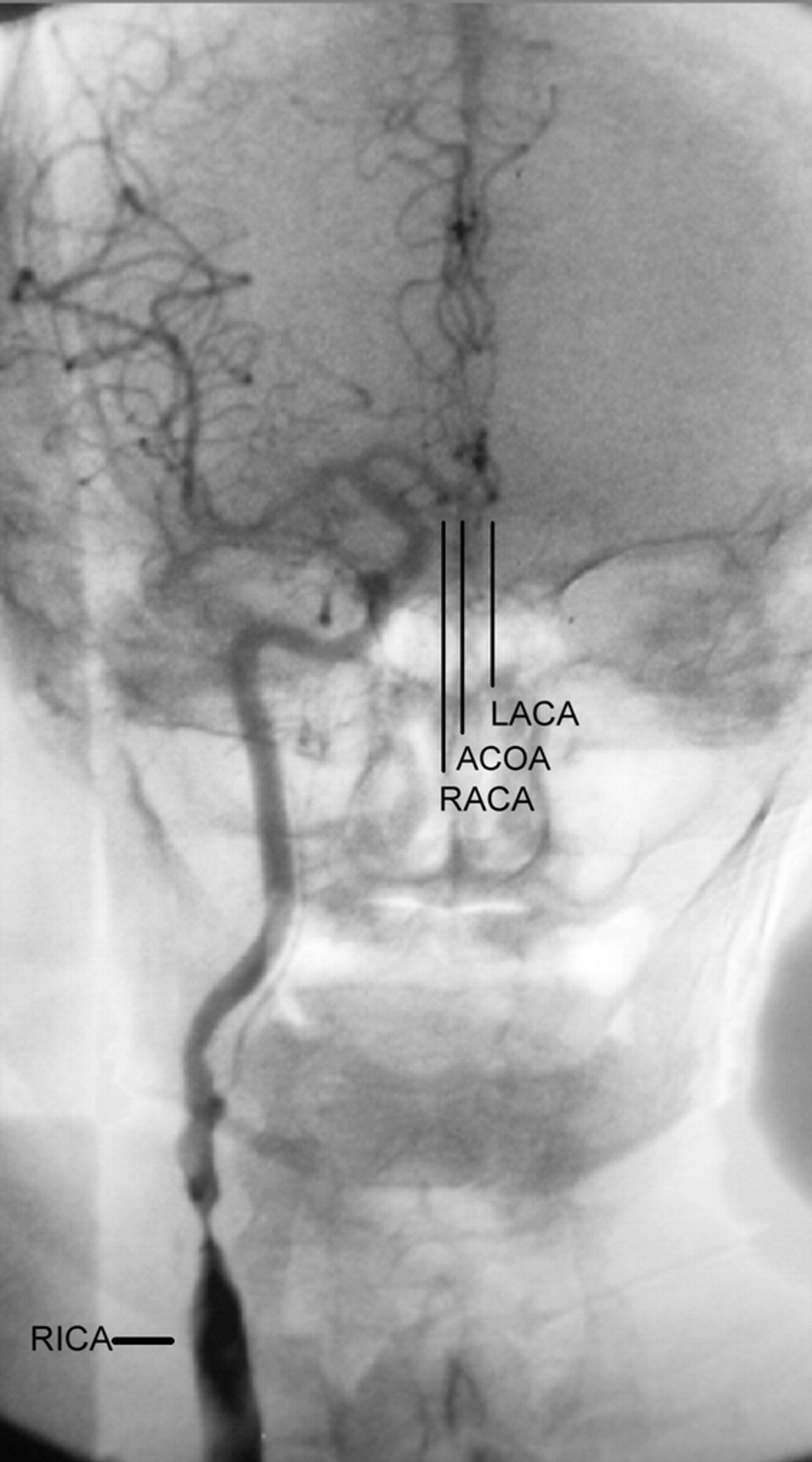 一个76岁的老人高血压和高胆固醇血症与多个事件,超过5天,两下肢麻木和软弱或右下肢。每一期持续了约30秒,通常发生在站。脑血管造影术显示关键右颈内动脉狭窄(图)。大脑前动脉都提供从狭窄的右颈动脉系统,导致两国的症状短暂下肢轻瘫。颈动脉手术后症状消失。发育不全的近端ACA发生在多达7%的人。1颈动脉狭窄的鉴别诊断应考虑瞬态下肢轻瘫。2