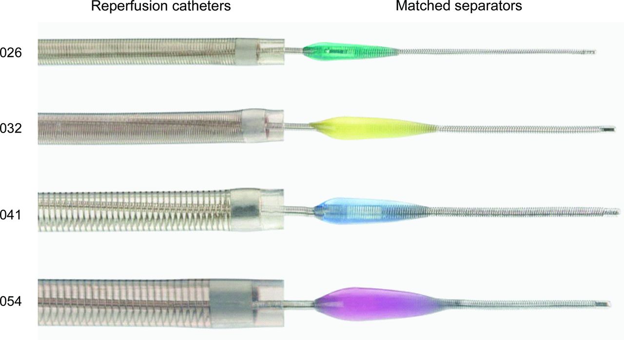 小2 - 3毫米大小的容器,如M2或P1段,使用的是032对,远端分支<直径2毫米,026条建议。在2009年的秋天,更大的054 ID再灌注导管和分离器是开发和销售能力与大血块增加愿望近端血管,尤其是ICA和椎动脉。