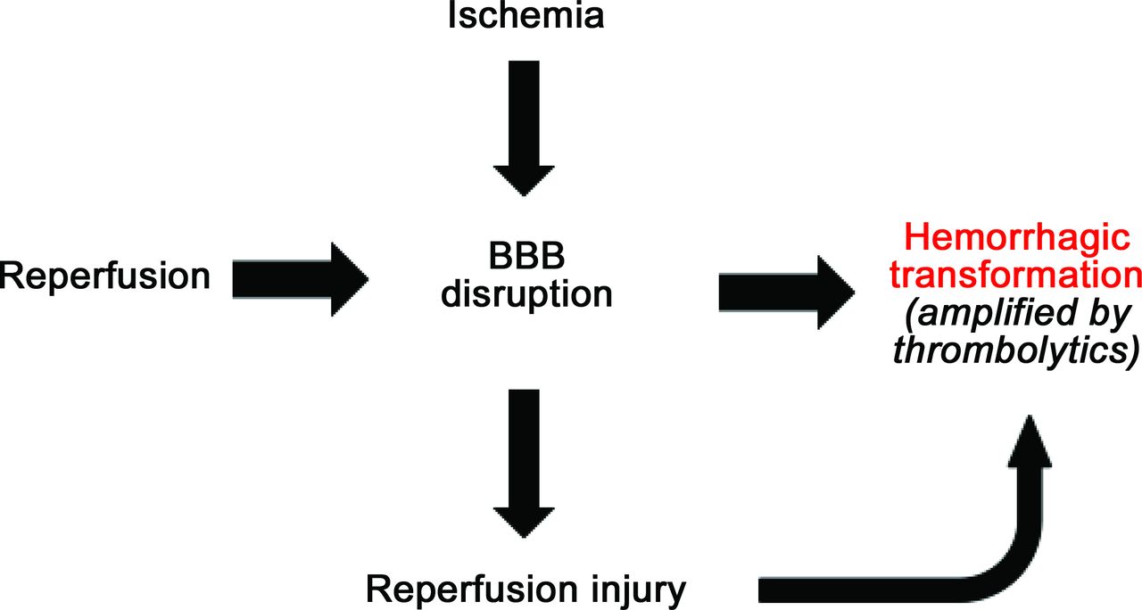 再灌注对脑组织的生存至关重要;它还会导致额外的组织损伤和HT的潜力。12再灌注损伤被定义在许多方面,包括内皮细胞的激活、氧自由基的生产过剩,炎症反应,白细胞招聘、细胞因子增加生产,水肿的形成。这些机制普遍是BBB破坏。13