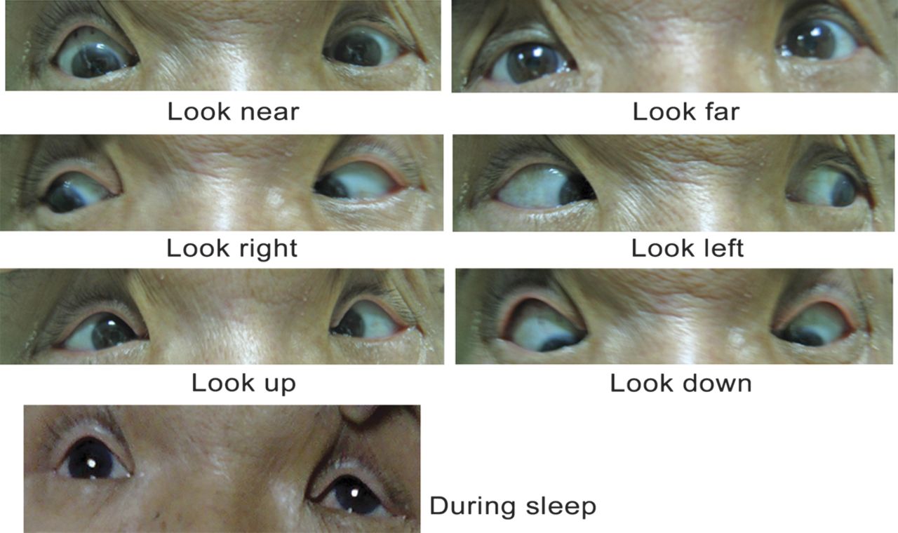 一个61岁的老人急性昏迷和左路的弱点。头部CT显示右丘脑出血(图1中,A和B)。第二天恢复意识,他举行了双边收敛过剩和向上凝视限制(图2),保留光和oculocephalic反射。这种现象消失在睡觉。