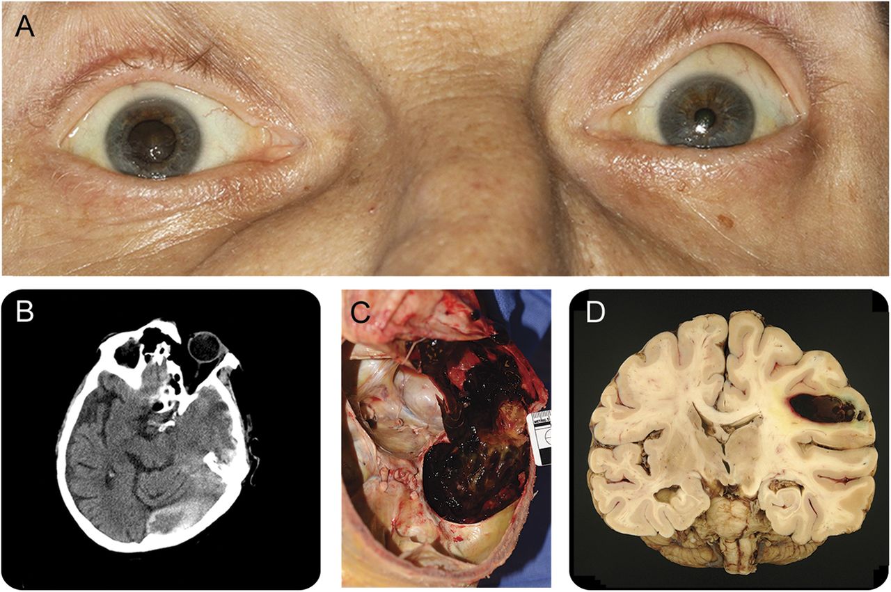 59岁的男子与酒精性肝病进入昏迷从急性硬脑膜下血肿。他开发了一个固定的扩张对学生但左侧瞳孔光反应。Oculovestibular反应是正常的。他伸肌姿态。尸检uncal形成疝不存在,但有一个对角线移动和旋转脑干可能拘束或压缩侧神经对第三幕骨脊或斜坡(图)。在pre-CT时代,一个错误的本地化固定学生导致负面探索性毛刺洞。目前,这一现象仍然是一个令人困惑的,理解不足的好奇心。1,2