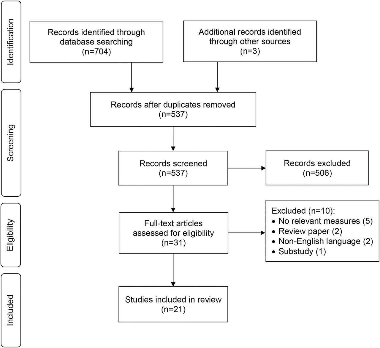 2016年4月1日,我们进行了一次电子奥维德MEDLINE数据库搜索,PsycINFO,和Embase(从《盗梦空间》)使用以下关键词搜索术语:“多发性硬化症”和“社会认知”或“心理理论”或“情感。“此外,谷歌学者的基本搜索和检索文章的参考书目中也进行了识别任何额外相关的出版物。