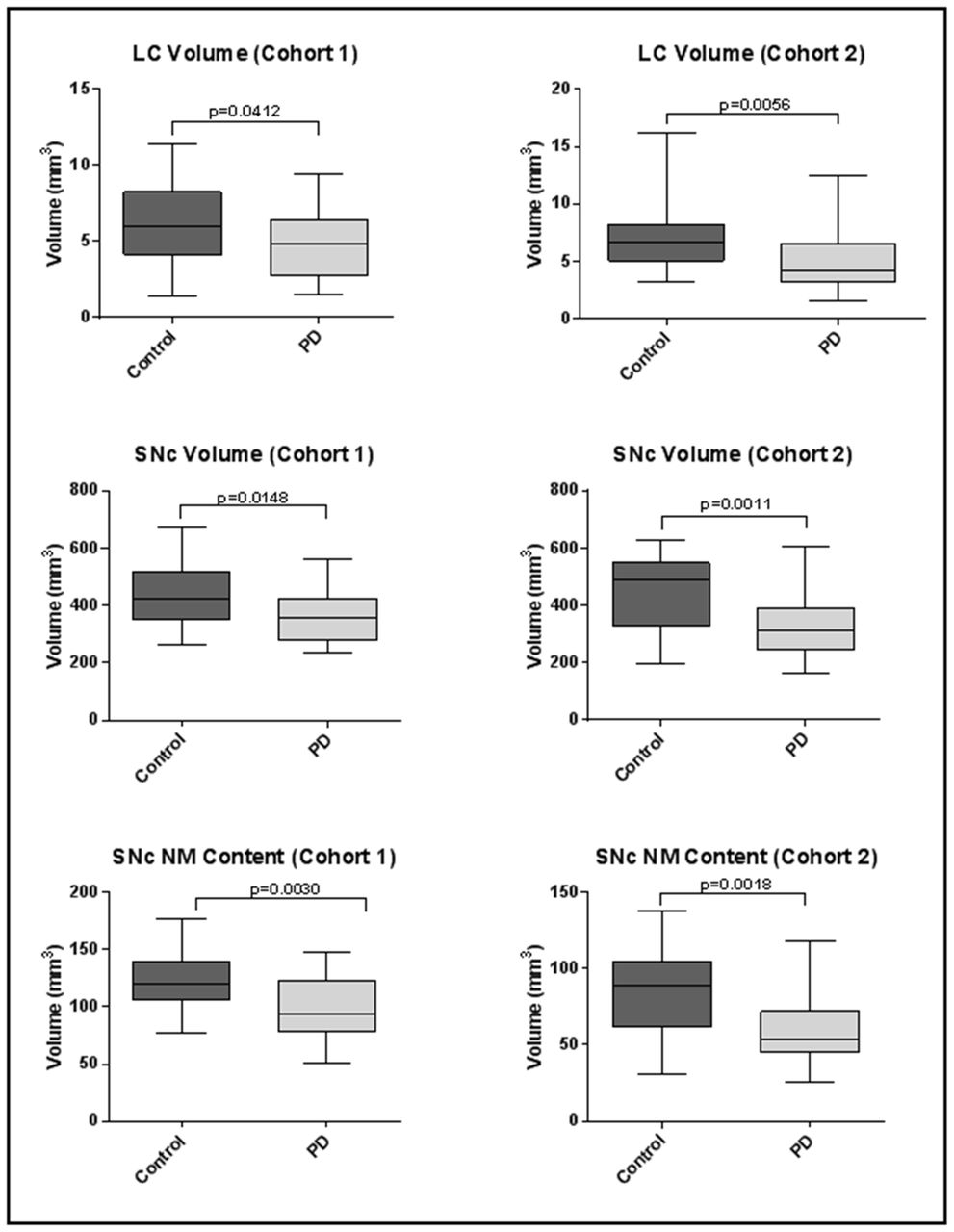 先进Neuromelanin敏感的核磁共振测量检测儿茶酚胺核帕金森病的影响:发现和验证在不同的人群(P1.076)