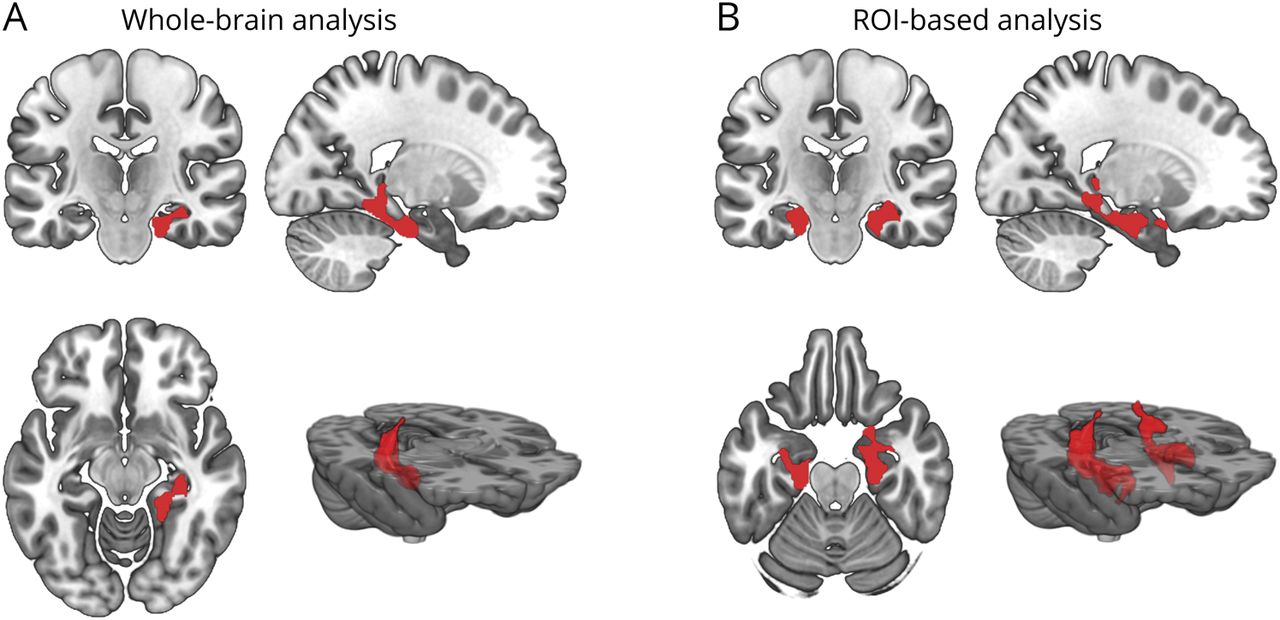 中世纪的分数和灰质体积之间的关系通过一般线性模型的应用研究(1示例t测试在SPM12)与年龄、性别、颅内总额,核磁共振成像扫描仪作为协变量妨害输入类型。异质性在MRI设备表示了一个炎热的编码分类数据,以避免顺序效应。此外,我们也重新进行分析纠正热量摄取,BMI,身体活动水平APOEε4地位。模型第一次被应用在整个大脑层面,没有任何先验假设,然后限制假说驱动的感兴趣的区域(roi) mediotemporal叶,它显示了早期广告的变化。31日选择解剖roi的自动解剖标记使用威克森林大学Pickatlas阿特拉斯工具SPM(双边海马、海马旁回)。值得注意的是,内嗅皮层是包含在海马旁回中定义的ROI自动解剖标记图谱(图的军医,doi.org/10.5061/dryad.6t1g1jwxg/)。修正多个非参数阈值的比较进行免费集群增强方法中实现SPM (neuro.uni-jena.de tfce /)。我们用免费的集群增强技术的阈值和5000种排列,集群程度权重参数E = 0.6和高度H = 2和显著性水平p< 0.05 (family-wise错误[FWE]纠正)。