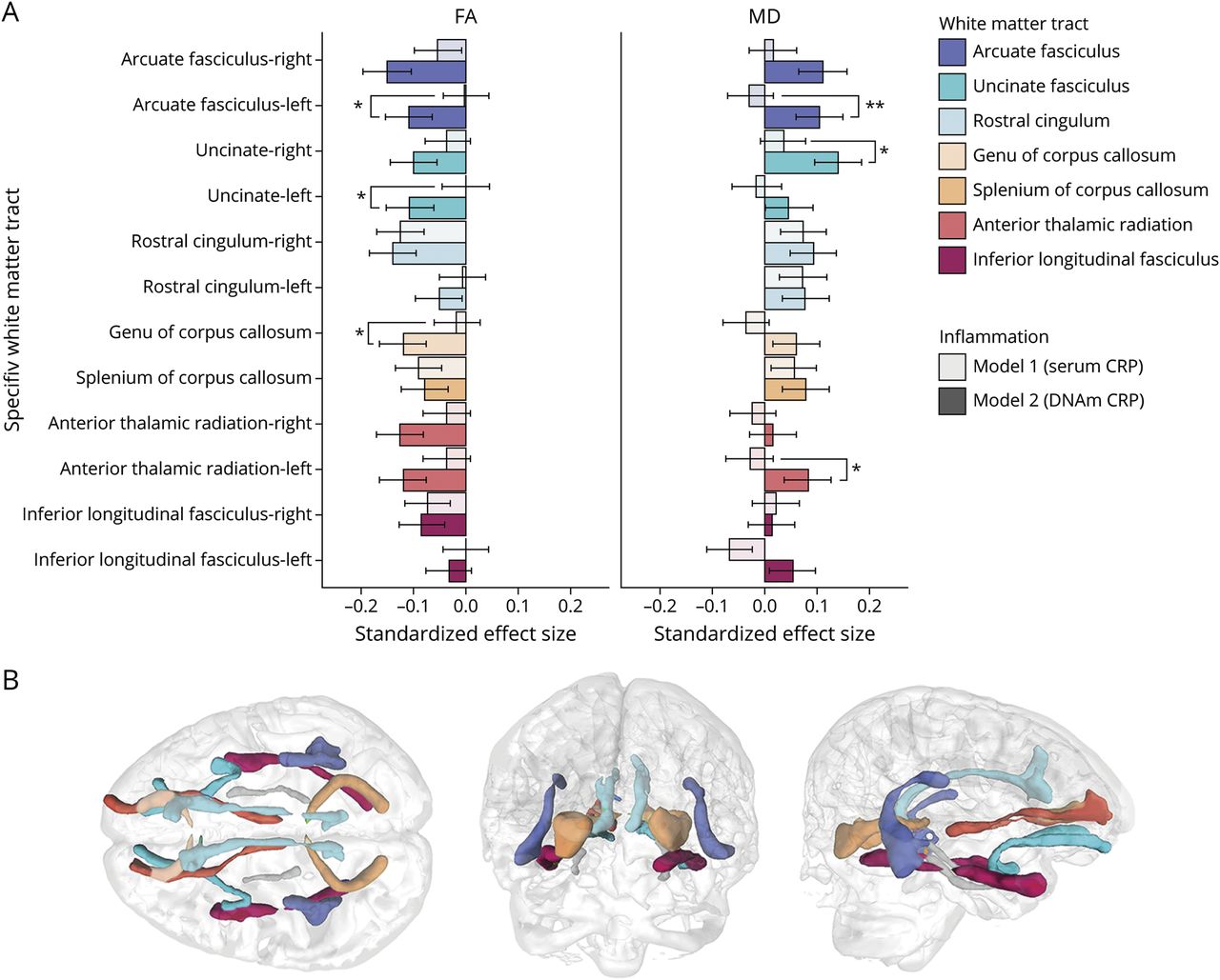 做一个后生炎症指标(DNAm CRP)显示更强的关联与白质(WM)组织比血清CRP水平?(II级证据)gydF4y2Ba