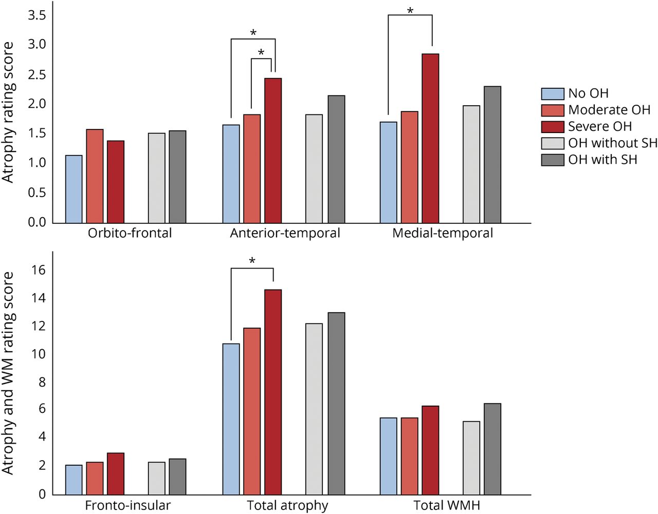 患者临床和神经影像数据从384年路易身体疾病证明哦与全球和区域涉及前颞脑萎缩和mediotemporal地区,在那些有严重的哦。患者未发现负责人负担的差异和没有哦或SH。此外,SH并不是与全球或地区脑萎缩有关。