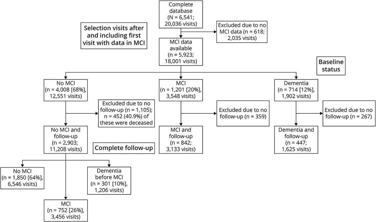 仅纳入在诊断为偶发性MCI后至少随访1次的参与者,以分析MCI的病程(即,在偶发性MCI后第一次随访时的状态)(图2).描述性统计用于比较MCI诊断后随访和未随访的参与者。