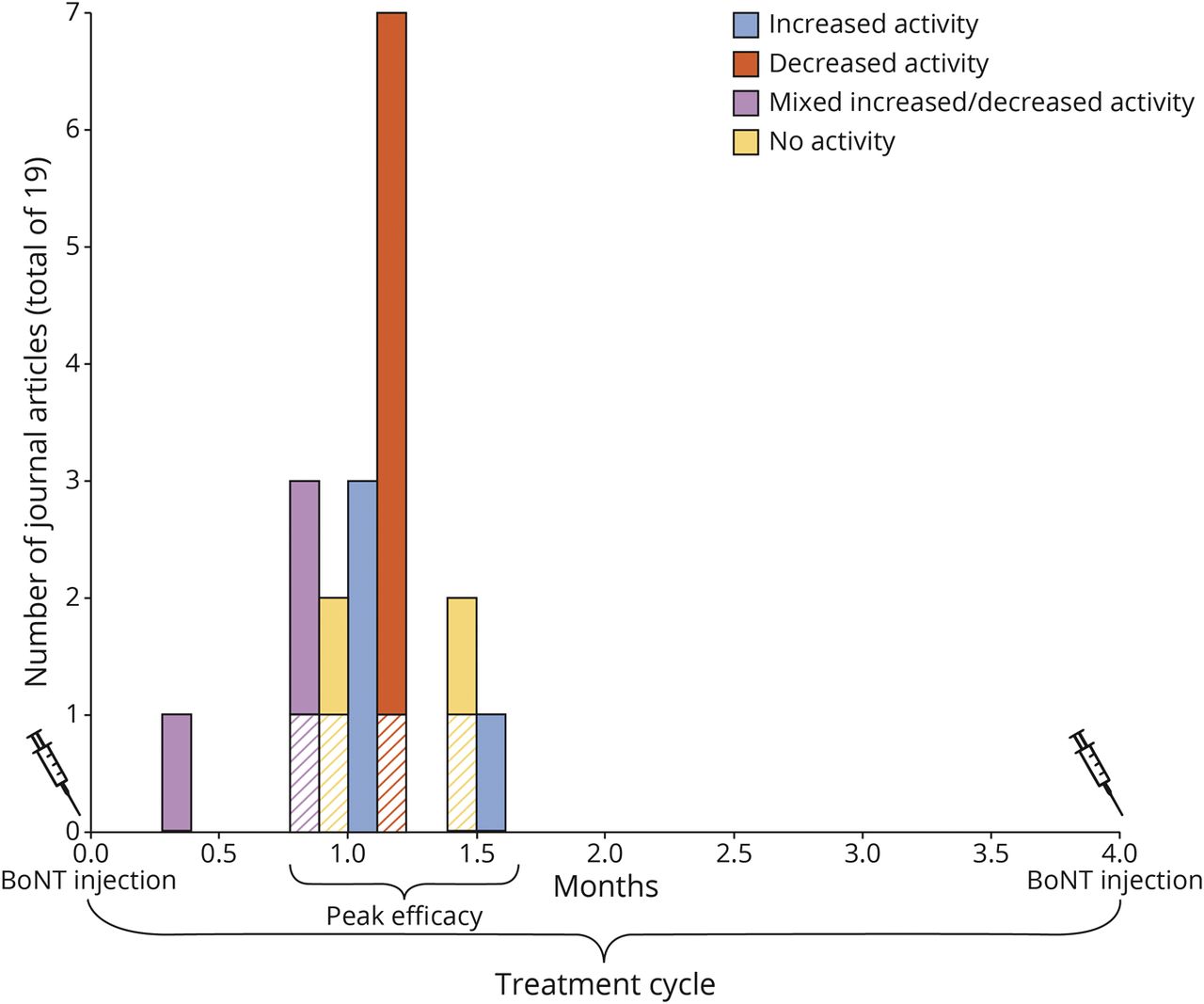 为此,当前文学6中央的影响LD和其他形式的焦肉毒毒素治疗肌张力障碍报道不一致的发现,从没有改变7,8到中度9对大量10大脑活动的调制峰治疗的好处,也就是说,大约1 - 1.5个月接受(图1eTable 1links.lww.com/WNL/C151)。BoNT-based的程度的神经调节障碍病理生理学这种狭隘的高峰时间窗口以外的功效是未知的,这限制了我们理解各种因素的短期(治疗周期内)和长期(多年来治疗)治疗的结果。