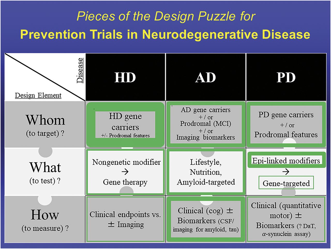 在本文中,我们将首先检查预防试验先例在广告和高清,之前关注的关键设计元素PD预防试验(图1),包括谁为这些试验注册,何时、以及如何招募;治疗什么测试;以及如何预防试验中测量结果(详细的9其他文章的补充问题)。我们认为这些进步的融合和见解鼓励即将启动的PD预防试验(如放大Berg的门齿概述和展望等。5)。