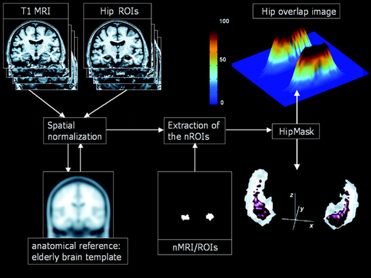 我们进行了两项研究。研究1 MRI-ROIs评估使用VBA正常化精度对海马体和获得一个精确的海马体和解剖学上有效的程序自动采样使用海马体面具(HipMask)。在研究2中,我们实现了正中的HipMask正常老年人的研究(NL), MCI患者,患者广告和比较的结果与现有的图像分析方法。