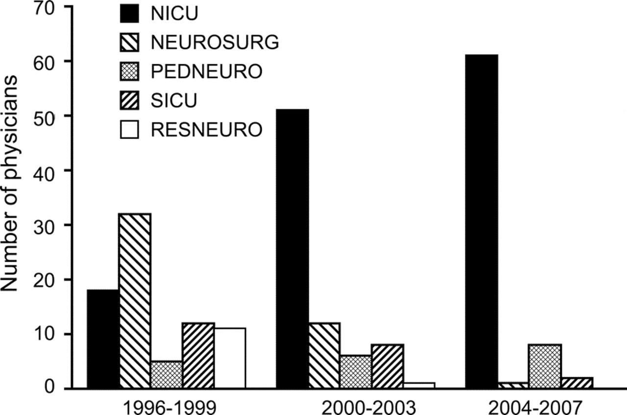 Neurointensivists (NICU)、员工(NEUROSURG)神经外科医生或住院总医师,儿科神经学家(PEDNEURO),外科intensivist (SICU),神经学总住院医师(RESNEURO)。首页