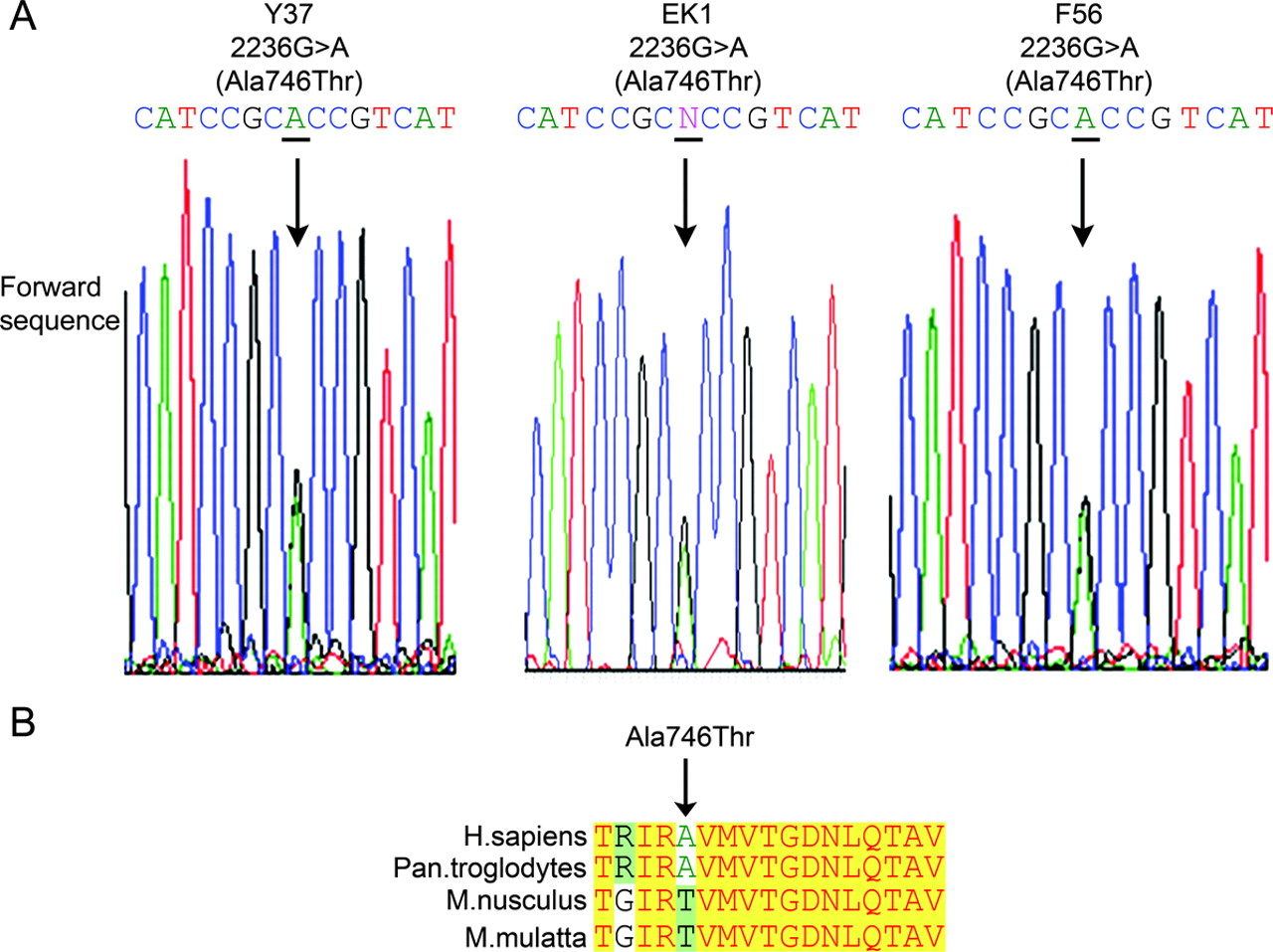图3 Ala746Thr突变的病人F37 rt - pcr分析