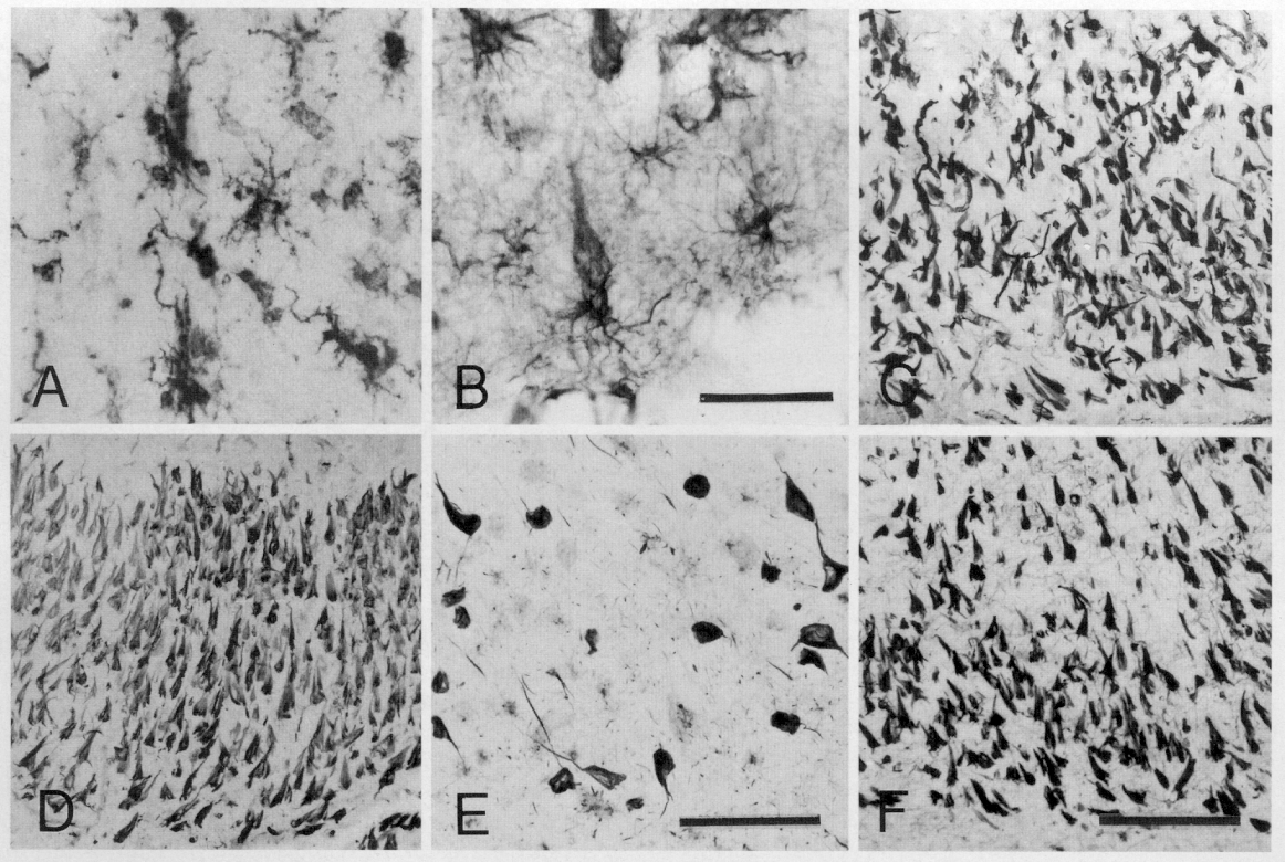例L1和L2显示大量HLA-DR和doil红色巨噬细胞在锥体束的好心人。可以观察到这些大脑脚水平。这两种情况下的脊髓也可用。类似的巨噬细胞出现在前部和侧面下行L2但不是L1的锥体束,在疾病的持续时间已经23年。前角细胞有明显的损失由甲苯基L1和L2的紫色染色。这些情况也显示,海马体适度数量的非功能性测试。L3提出了一个不同的画面。没有出现在任何大脑结构,非功能性测试,没有锥体束介入的迹象。脊髓和髓质检查由彼得·兰托斯博士(个人沟通),发现广泛的前角细胞变性的特点降低运动神经元参与但没有上运动神经元损害的证据。