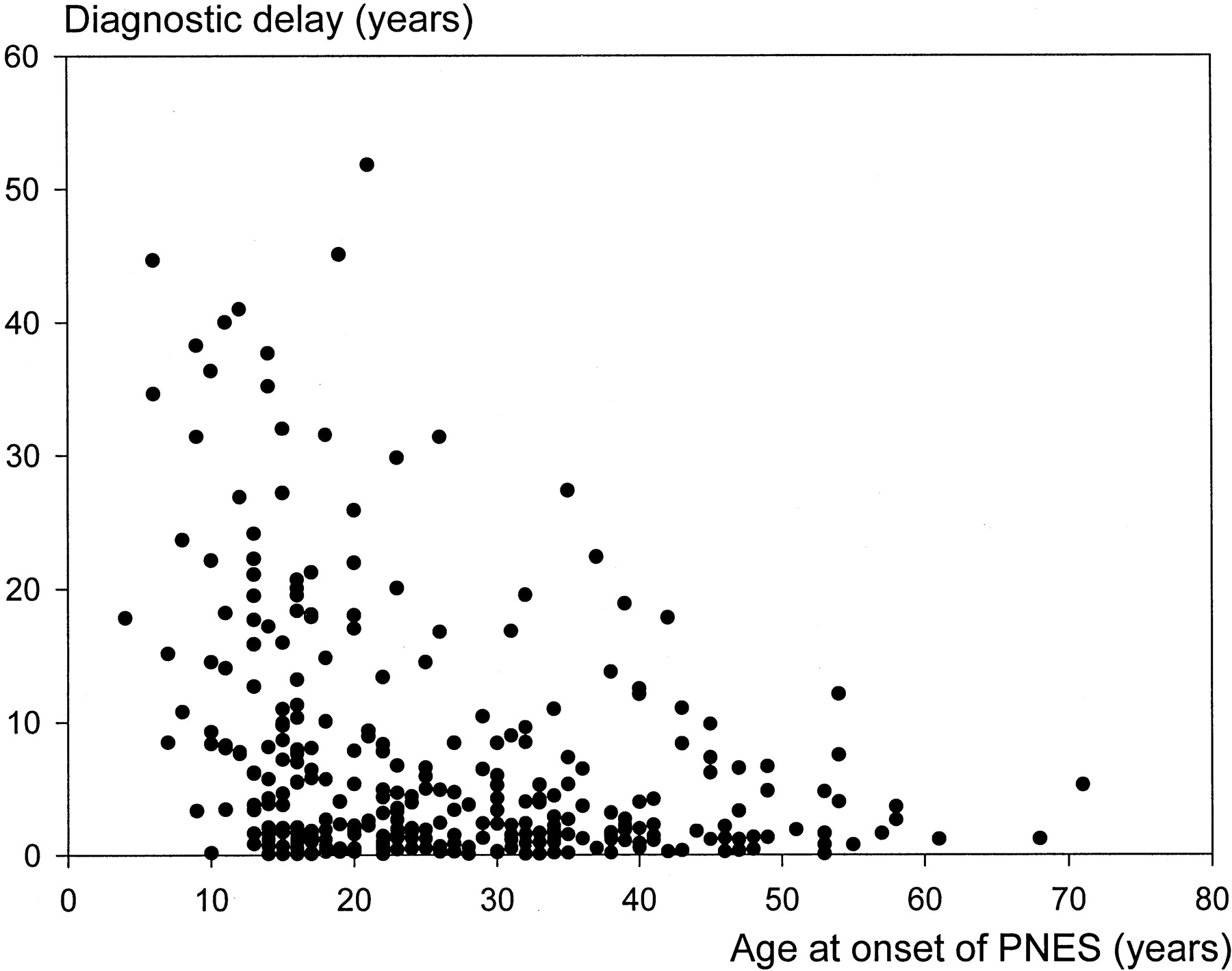 延迟诊断,研究了在313年连续心因性nonepileptic癫痫患者(pn)。平均pn患者确诊后7.2年(SD 9.3年)表现。年轻的年龄、发作癫痫样的潜力在脑电图,和抗惊厥的治疗与再延迟。其他病人因素不能解释的变化诊断,表明医生因素导致了延迟。