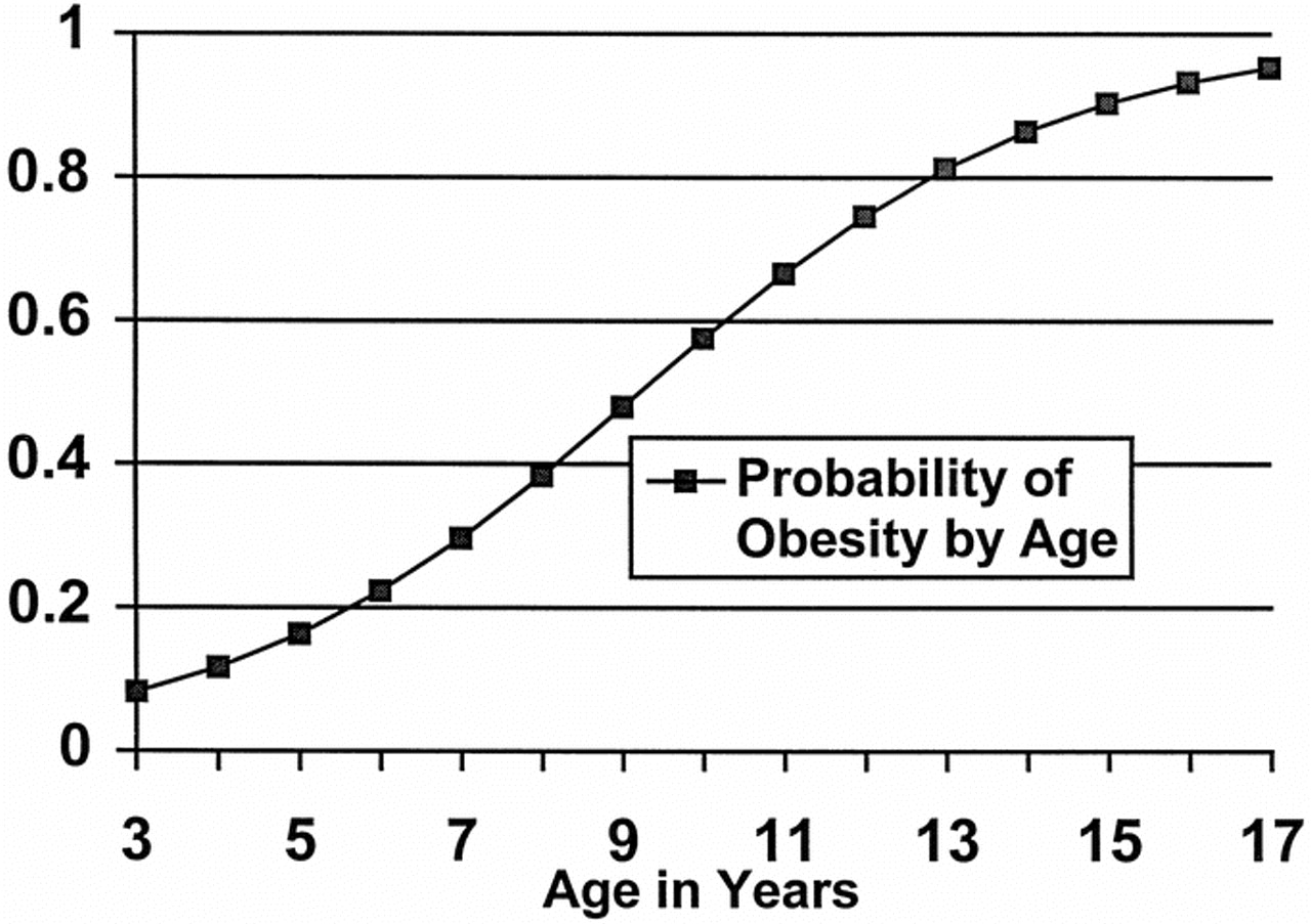 确定肥胖的趋势发生在年龄较大的儿童可能会导致在这些年龄段女性的优势,分析了潜在的干扰。2乘2表的使用方法,肥胖不存在与女性性在3 - 11年年龄tertile(确切概率法,p= 0.59)。这个年龄段选择进行分析,因为大多数男孩9(7)包含在这tertile。当女孩年龄和肥胖之间的关系研究,利用逻辑回归分析,肥胖的概率增加,随着年龄增长持续,但边缘的意义(p= 0.08)。因此,年长儿童的肥胖的可能性似乎没有完全依赖于更高比例的女孩在老年群体中。