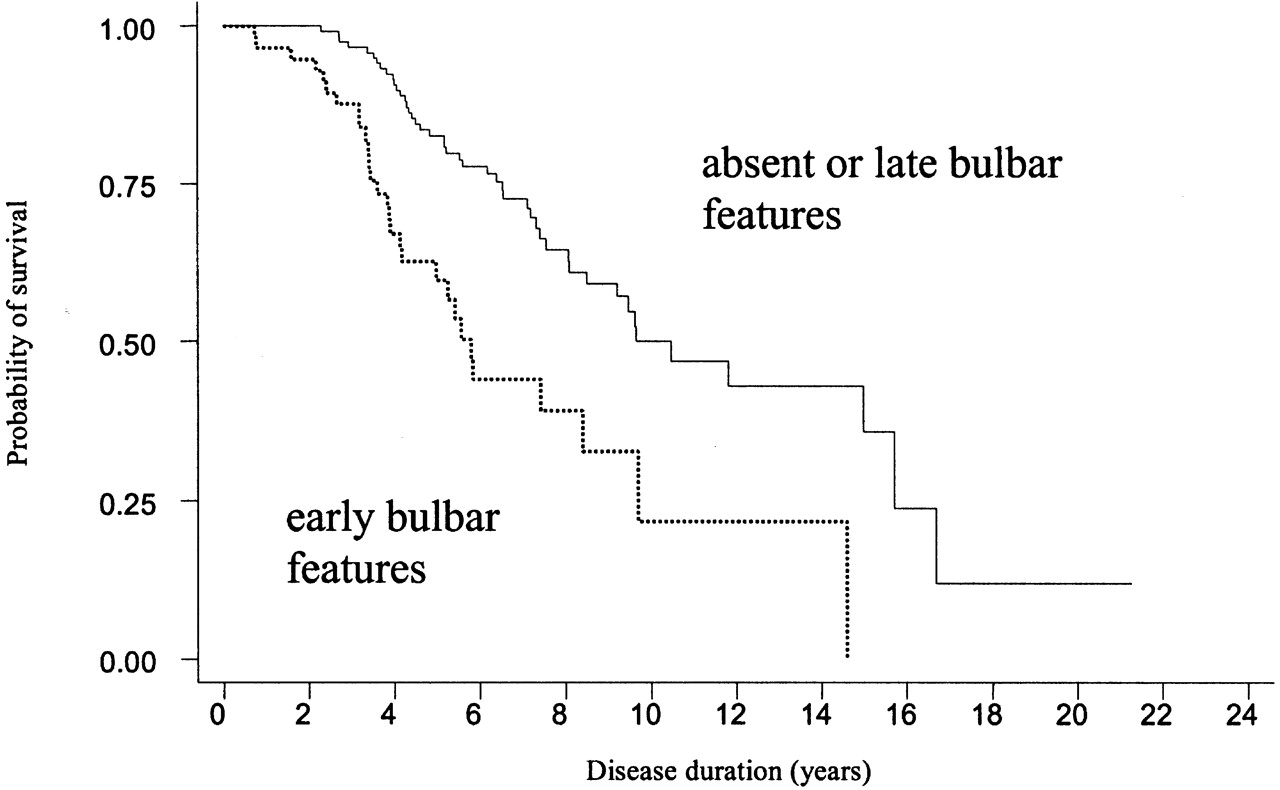 人口数据,推荐的路线,先前诊断,日期的第一个症状,表现症状,检查发现,治疗反应,死亡日期为每个病人都被记录下来。临床特征是作为当前输入,缺席,不记录到一个特别设计的数据库(创意电脑顾问,达勒姆,英国)。疾病发作是由最早的临床特征。从发病到每个临床特征定义为症状的发展延迟。在大多数情况下发作的月、年是可用的和分析的准确日期任意作为本月的第一天。只可用一年和月并不表示,7月1日作为中点。为每个临床症状延迟计算功能。下降,患者复视,畏光,或语言问题1年内发生疾病的发病被定义为拥有一个早发性(短延迟)的特性。下跌发生在开始的第一年是可能的PSP的强制特性根据NINDS-SPSP标准。患者眼睑失用症或吞咽问题发生疾病发病2年内被定义为拥有一个早发性(短延迟)的特性。 Features developing after this period were classified as late onset (long latency). These values were chosen using a cut-off to provide sufficient cases (usually around 30%) for analysis in the early group. These groupings were done before any survival analysis had been undertaken, rather than post hoc.