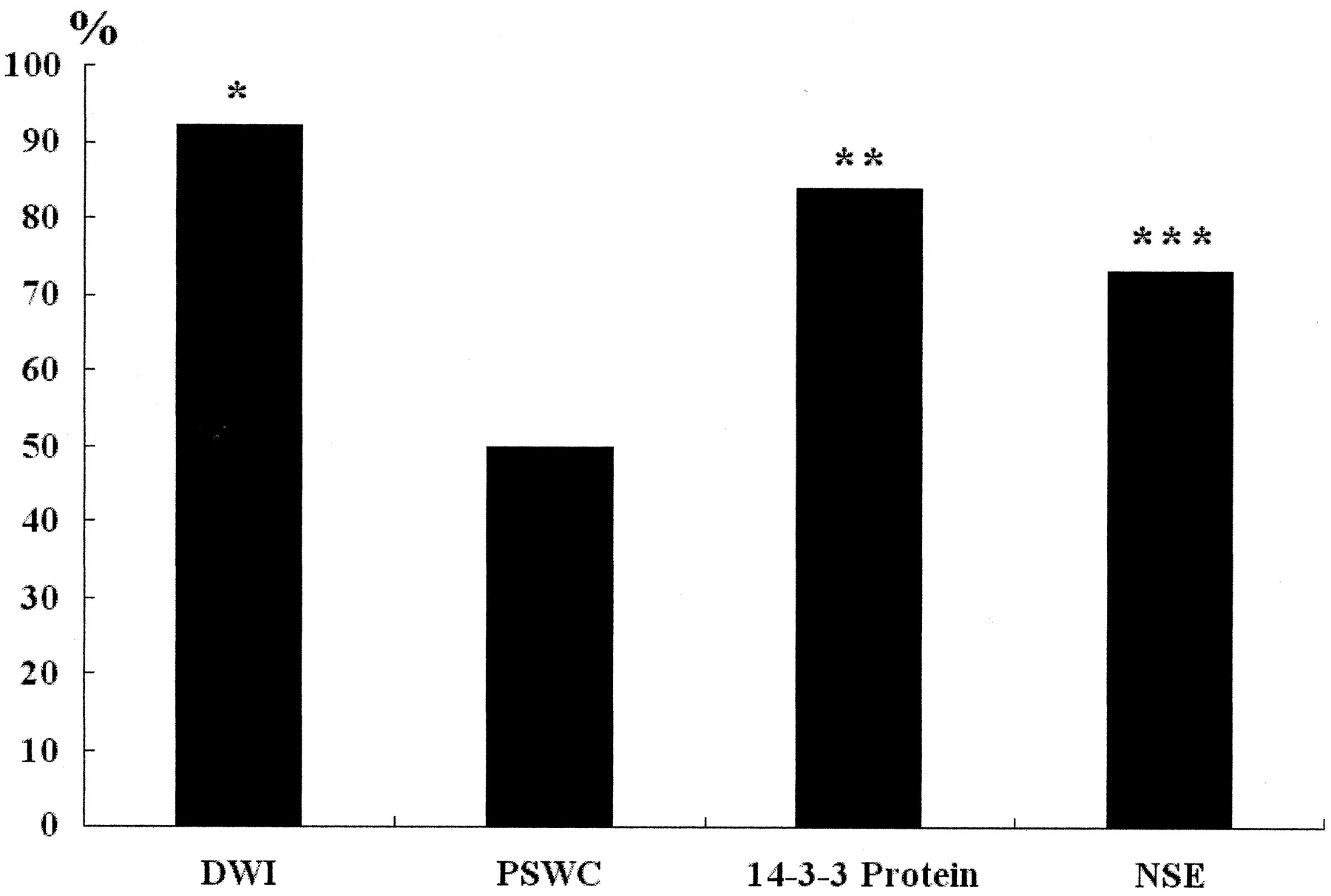 统计分析的诊断敏感性酒后驾车,PSWCs,了无14-3-3蛋白CSF,积极醉酒驾车,T2I,和天赋,interobserver协议率使用Fisher精确概率测试完成。