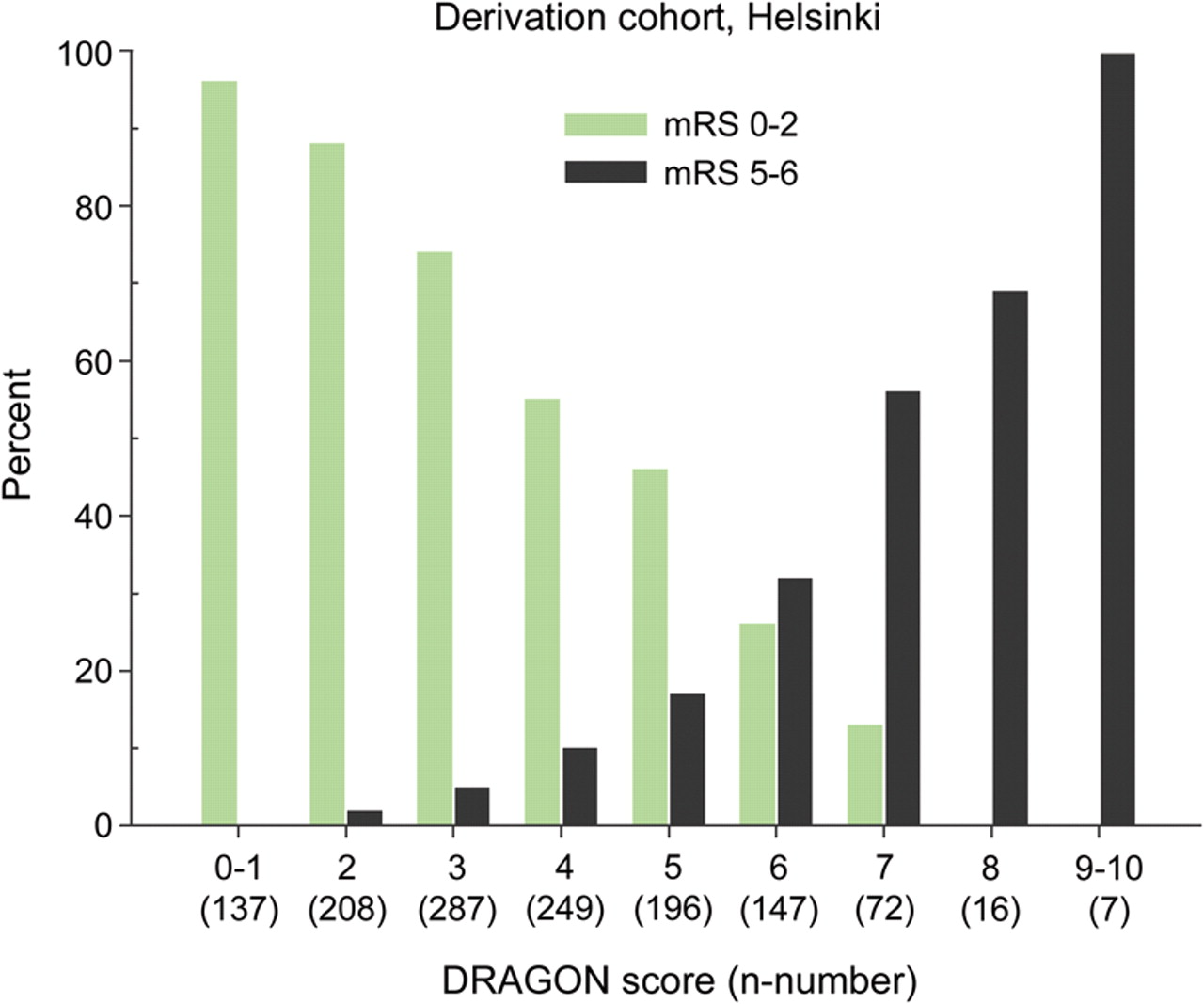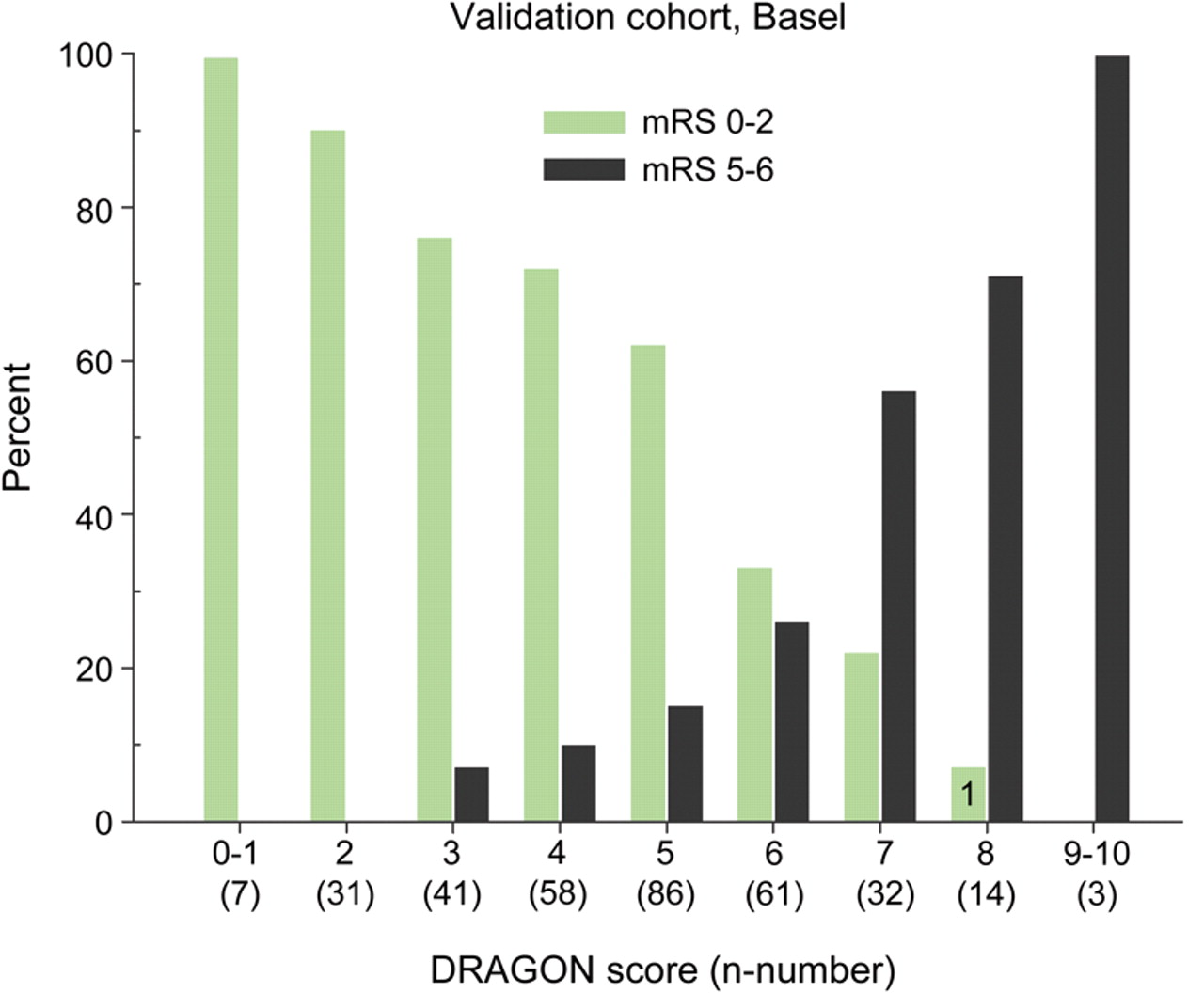 结论:龙得分是有效的在我们的网站和可靠的外部。它可以支持临床决策,特别是入侵被认为是附加策略。分数不是底动脉阻塞患者的研究。进一步的外部验证是十分必要的。