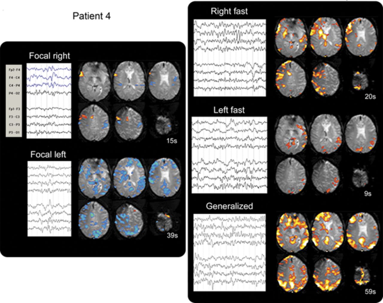 同时测量脑电图和fMRI显示能力进步的理解大脑区域参与发作癫痫样的活动。6,7EEG-fMRI研究已经确定了血氧变化等级相关(粗体)对比与焦点8,- - - - - -,12和广义痫性活动。13,- - - - - -,18