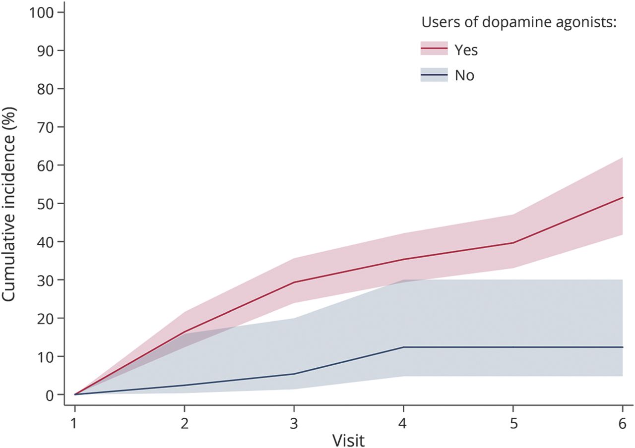 多巴胺受体激动剂(DAs)表示他们的主要危险因素。4,- - - - - -,6,8,- - - - - -,11而接口控制文件的频率是类似于普通人群的未经处理的新创PD患者,DA启动后的频率增加。3然而,目前尚不清楚是否存在量效关系。虽然一些研究发现大剂量和接口控制文件之间的关联,2,9,12,13有些则没有。4,14
